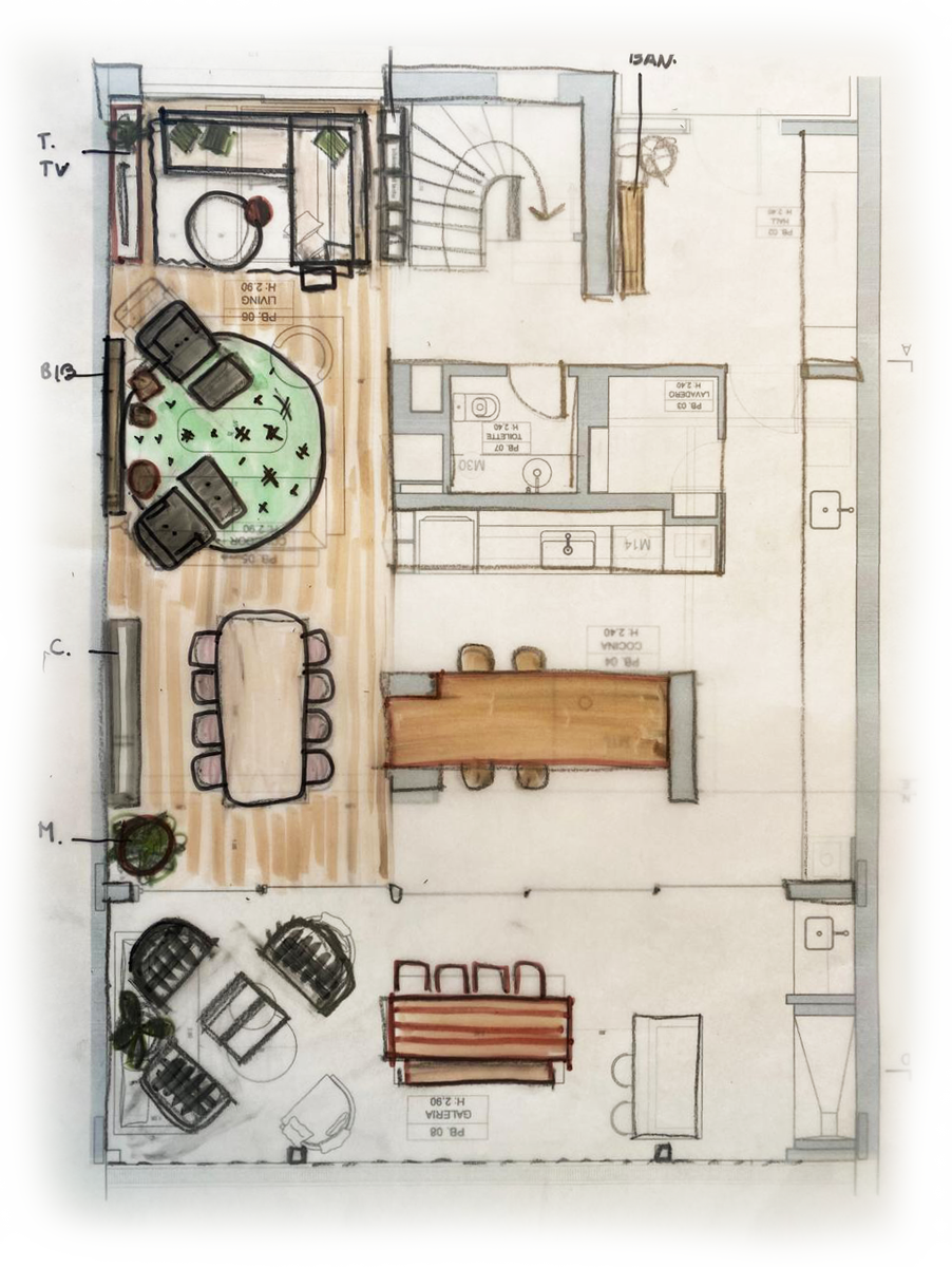 Nuestra propuesta de valor como estudio se basa en analizar los espacios disponibles al detalle y crear soluciones funcionales, tanto en proyectos de arquitectura e interiorismo residencial como también comercial y corporativo.