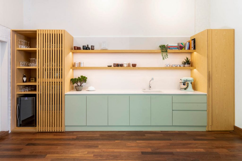 Esta reforma es mucho más que la de una cocina. Es un trabajo dentro de un galpón ubicado en el fondo de una hermosa casa del barrio de Palermo, donde resolvimos problemas de temperatura interior, humedades, nueva funcionalidad de los espacios y circulación.