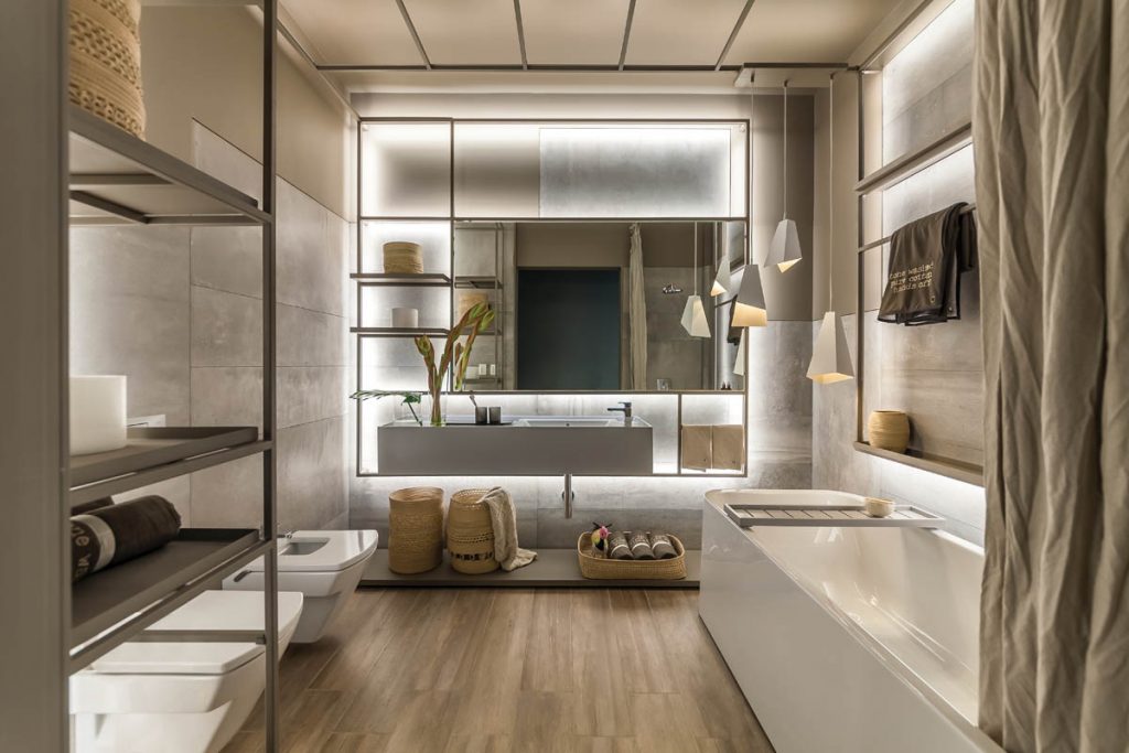Debe ser resistente, estéticamente placentera y altamente funcional. Todo en uno. Es un modelo de simplicidad y eficiencia, concentrado en un pequeño espacio del hogar, que debe servir a cada miembro de la familia. Es el que acompaña de forma receptiva y confortable al ritual cotidiano del cuidado personal, para entrar y salir o permanecer un rato.