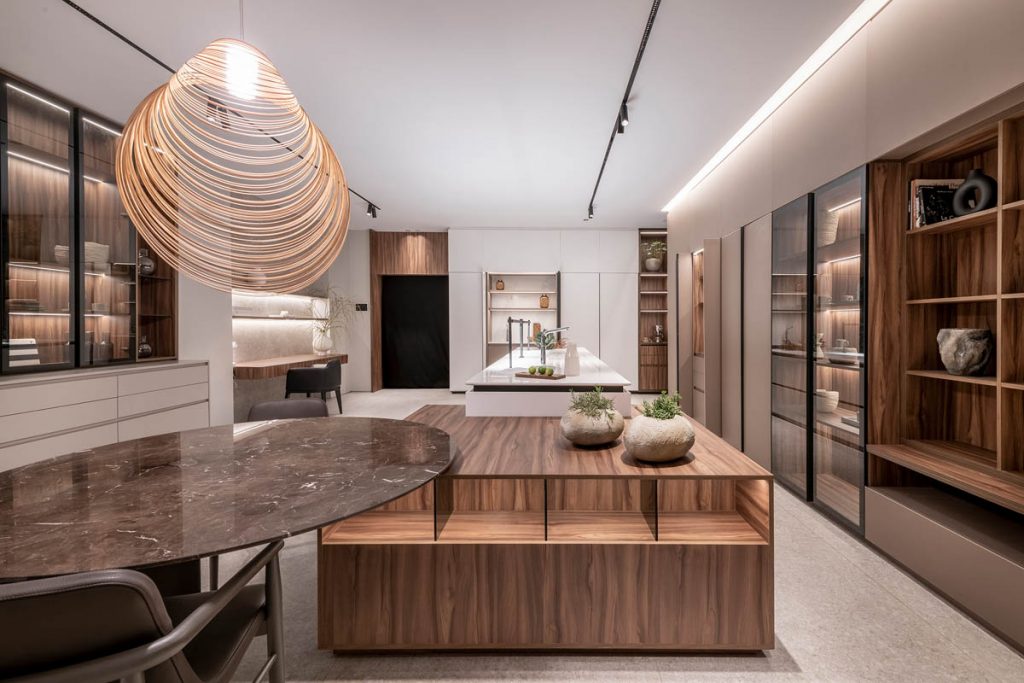 El proyecto se concibió como un sistema integral, capaz de combinar de forma eficiente el área de trabajo con el comedor, aprovechando cada metro cuadrado para maximizar su funcionalidad y potencia.