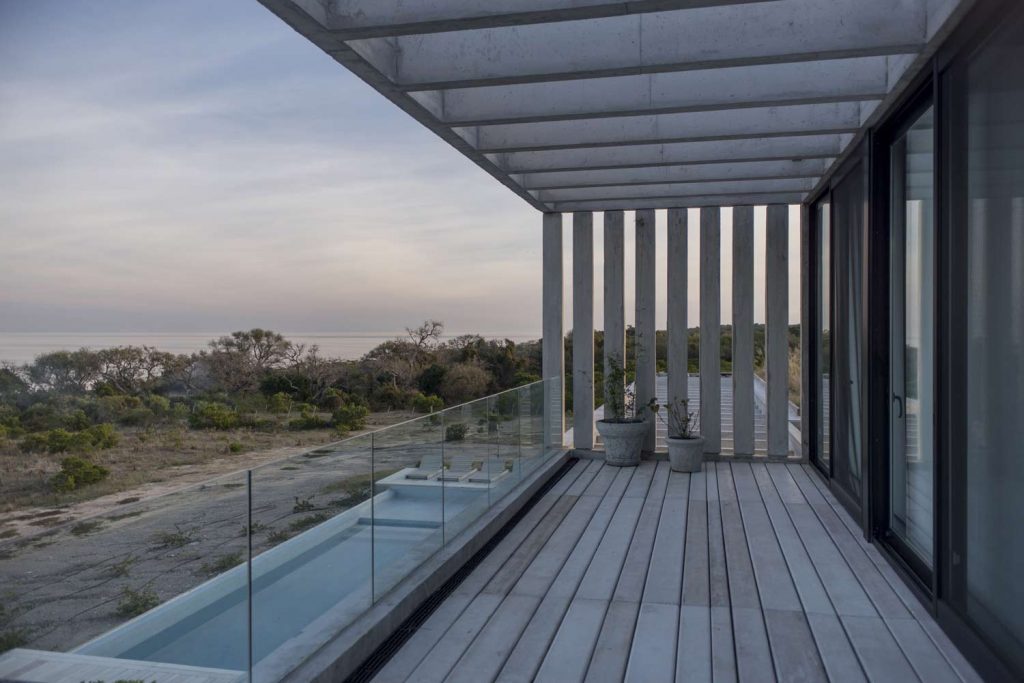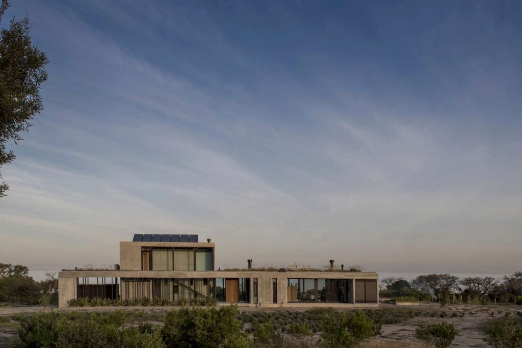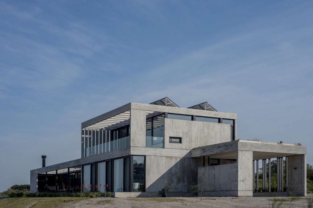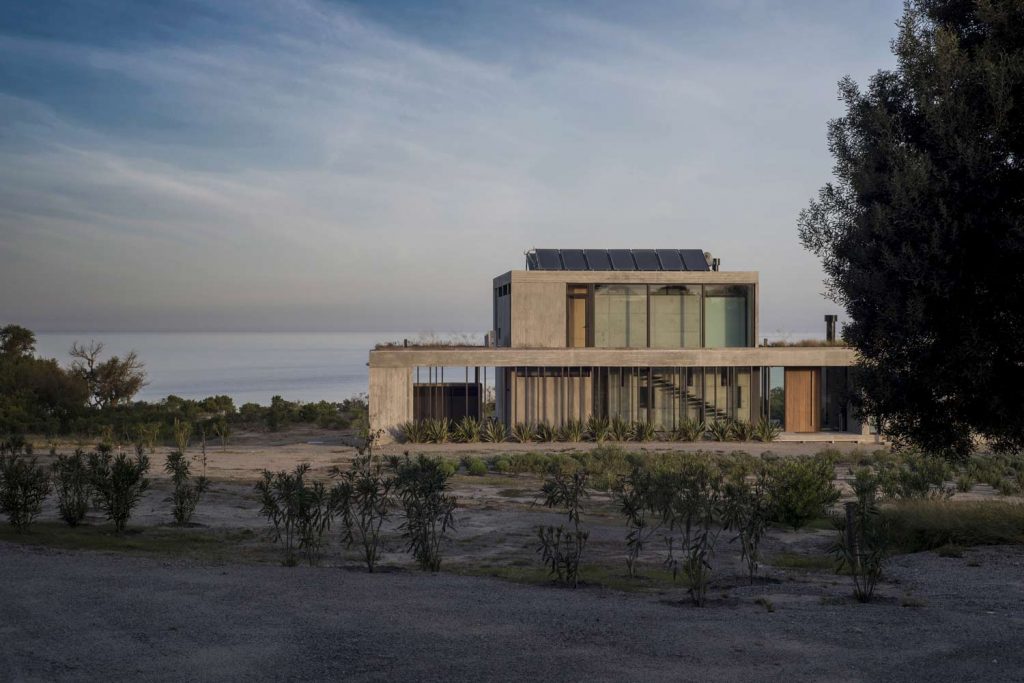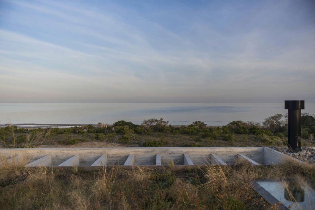 La casa La Flecha se encuentra en las afueras de Colonia del Sacramento, Uruguay. Sobre un terreno con acceso a la playa, de suelo arenoso con sedimentos de tierra, vegetación rústica, paisaje de campo y del Río de la Plata.