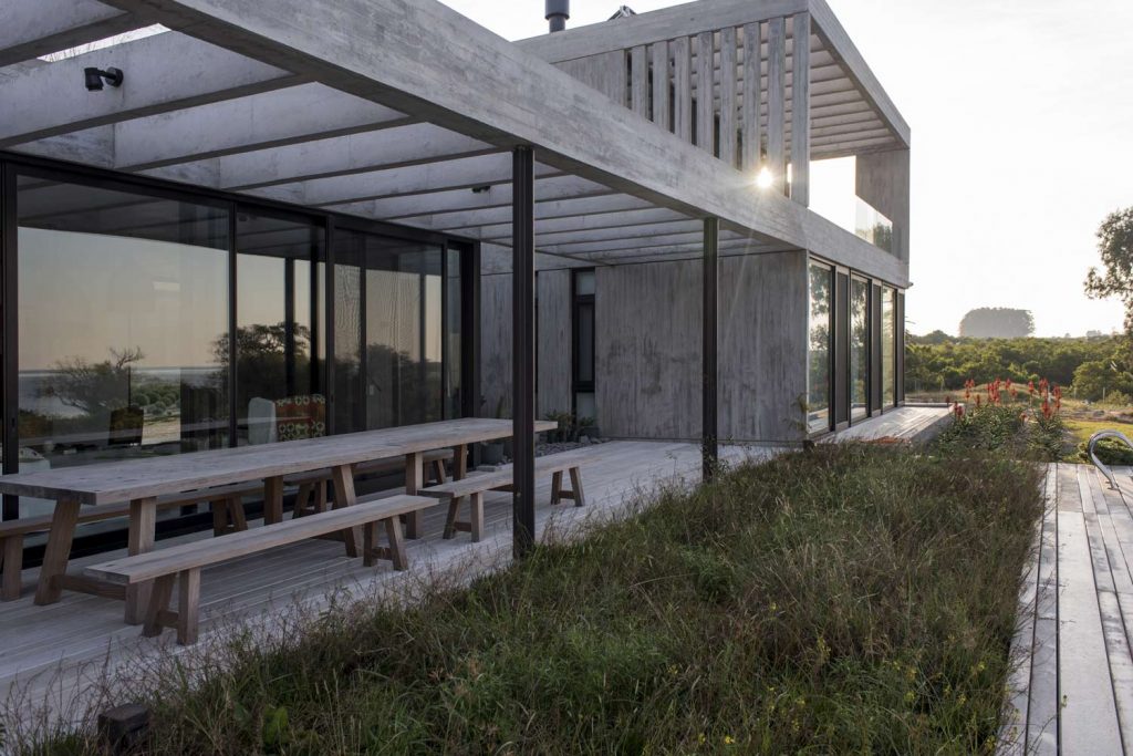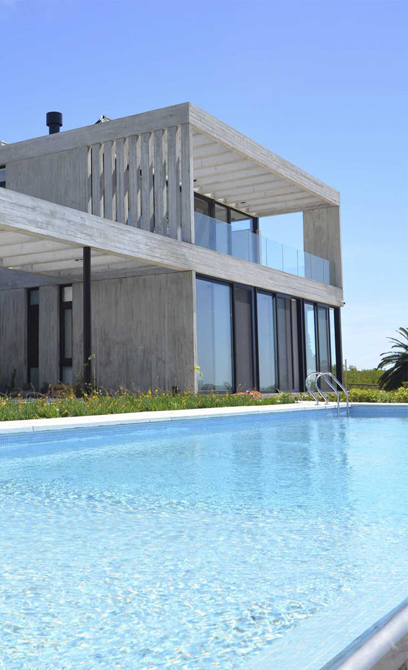 Por eso el área pública de la casa es un único y gran espacio de encuentro que integra las funciones del estar,la cocina, la parrilla, la pérgola y la expansión exterior.La pileta con el mismo criterio, se ubicó lo más próxima posible a la casa, cuidando que a ésta no le den sombras durante todo el verano.