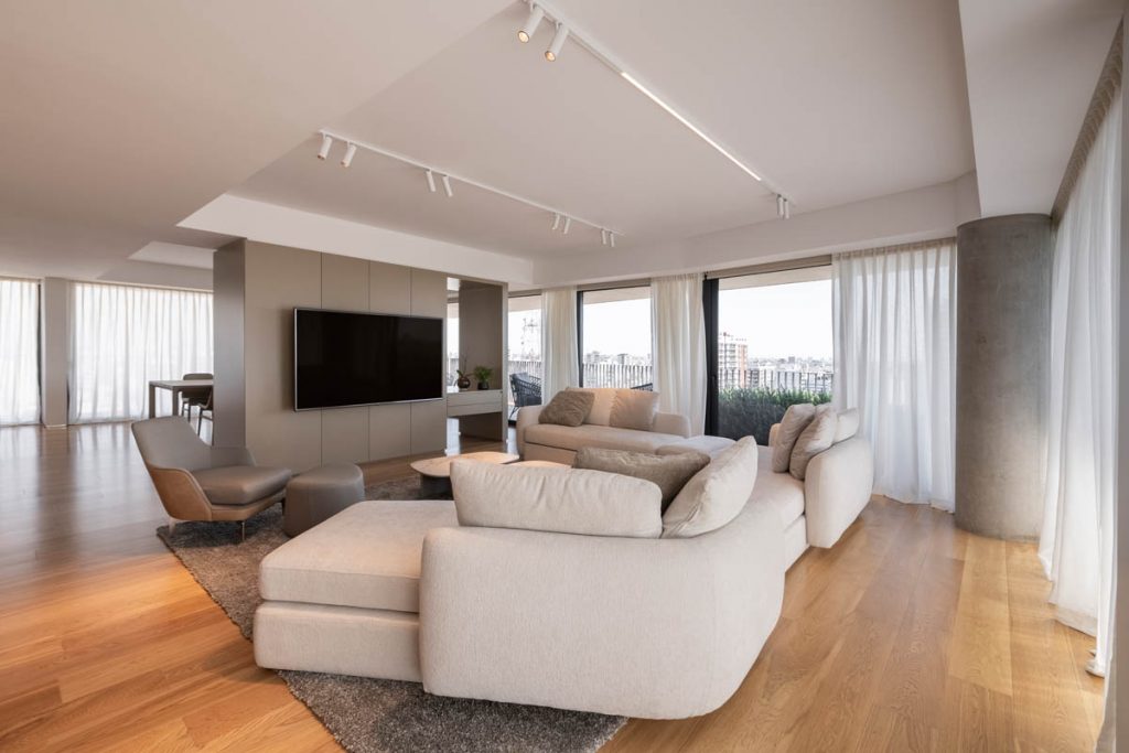 En una zona residencial de Caballito en pleno crecimiento, desarrollamos el interiorismo integral de un departamento en la torre Donna Aqua, parte de la reconocida serie Donna del desarrollador Azcuy. Este proyecto se suma a nuestra experiencia previa en el edificio Donna Terra, donde en 2021 realizamos el interiorismo completo de otro departamento de esta serie.