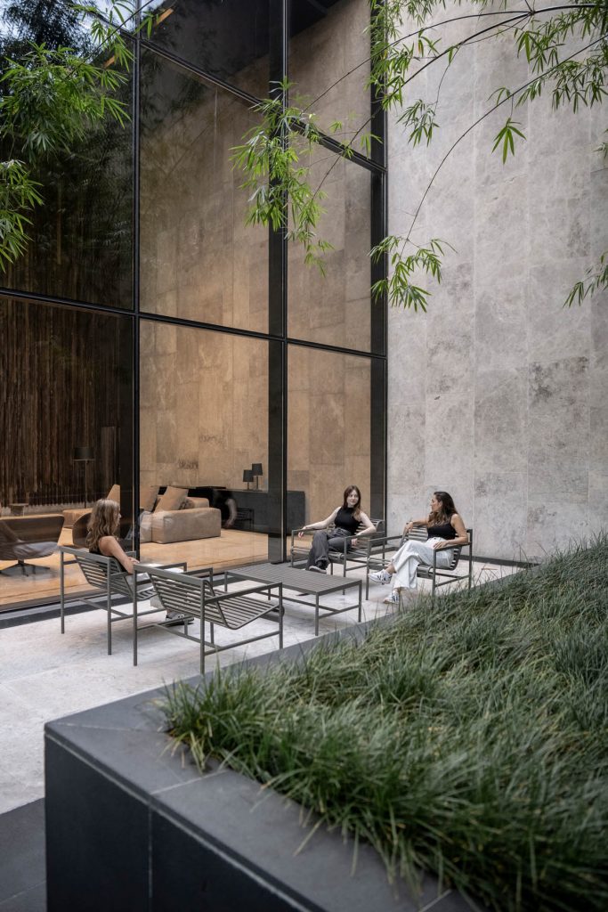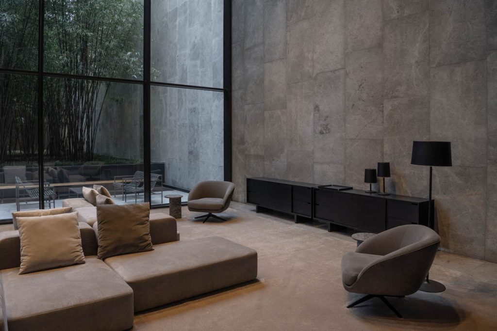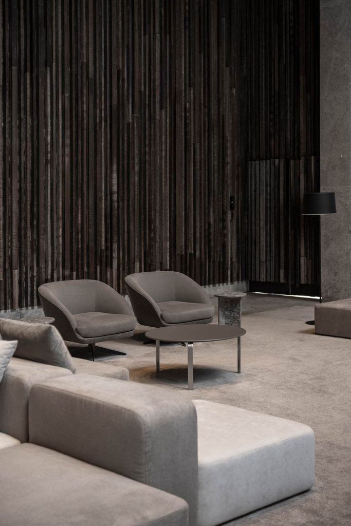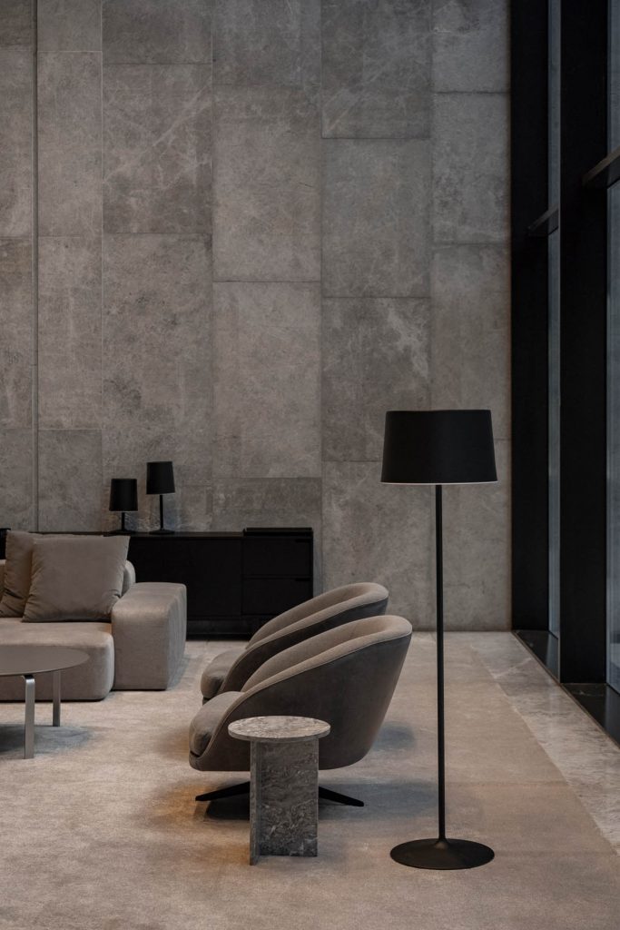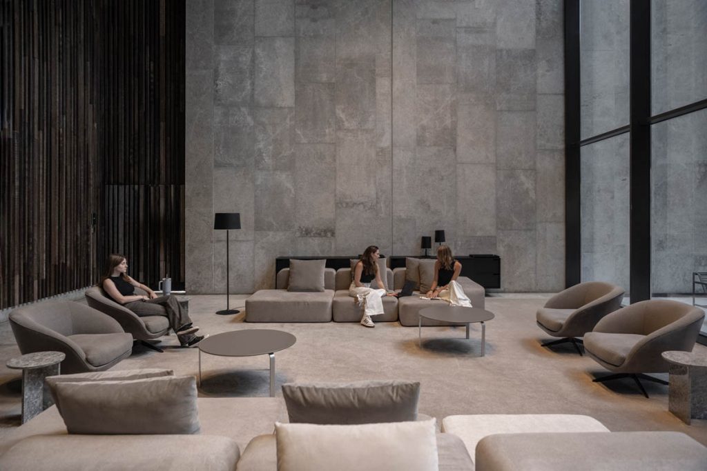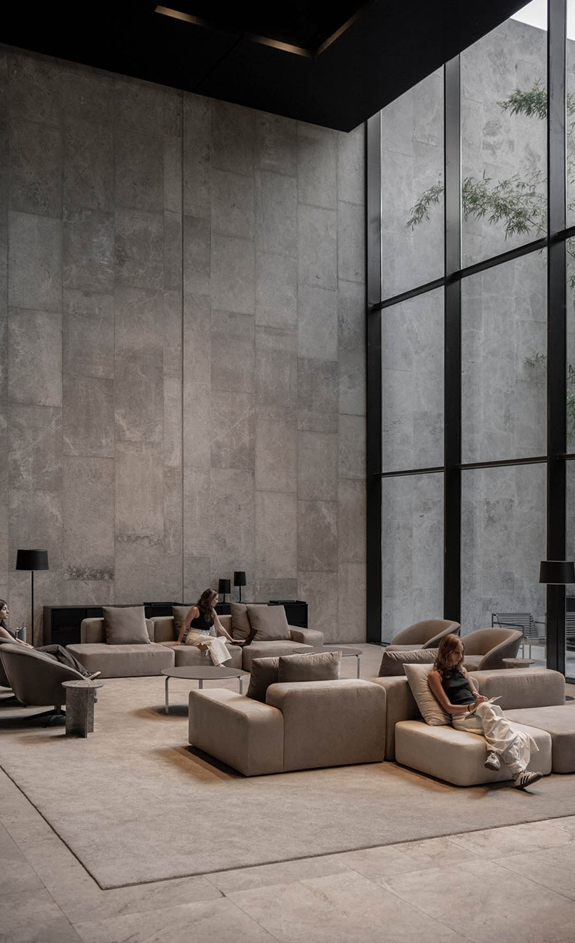 Se definió una estética contemporánea y precisa, con mobiliario de líneas puras y una paleta neutra que acompaña la escala y la materialidad del edificio. El resultado es un conjunto de áreas amplias, cómodas y cohesionadas, que refuerzan la identidad del edificio y mejoran la experiencia cotidiana de quienes circulan y trabajan en él.
