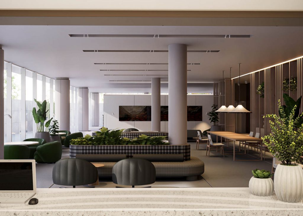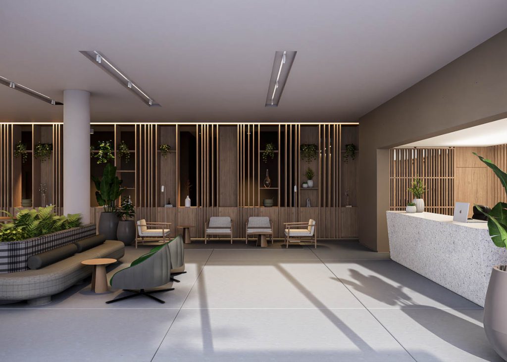En el marco del desarrollo del conjunto de Torres de Manzana 35 de IRSA, con proyecto de arquitectura a cargo del estudio Dujovne, desarrollamos el interiorismo del hall de entrada y showroom de ventas, comprendiendo la recepción, oficinas y unidades modelo. El diseño se enfocó en ofrecer un entorno funcional y representativo del desarrollo, alineando cada área con los estándares de calidad y estética del proyecto, para transmitir de manera clara y efectiva la propuesta de valor a clientes e inversores.
