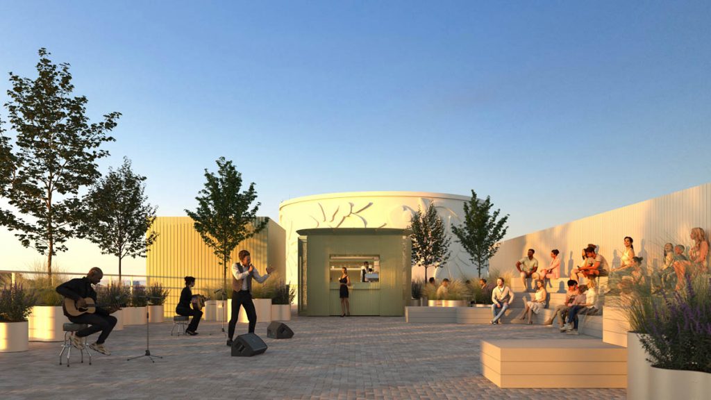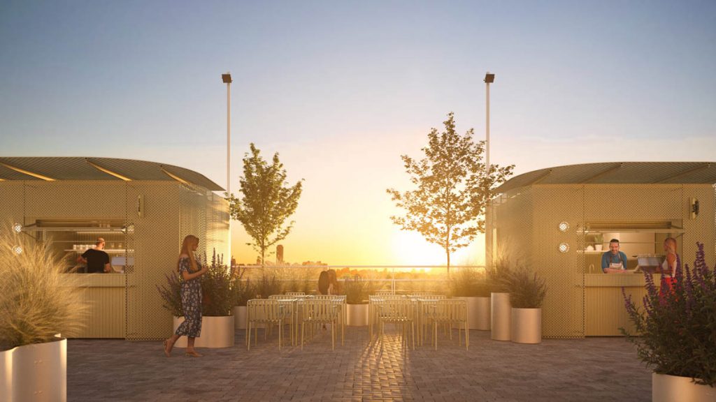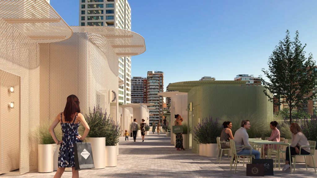 Este paseo a cielo abierto transforma un techo técnico en un lugar de encuentro de calidad internacional. Fusiona el concepto de rooftop con el del paseo urbano, ofreciendo un entorno dinámico, cálido e íntimo. Desde aquí, la ciudad se ve de otra manera: los árboles de Palermo, el brillo del Río de la Plata y el movimiento del sol sobre Buenos Aires se acercan.