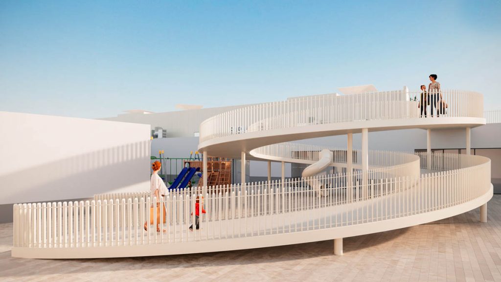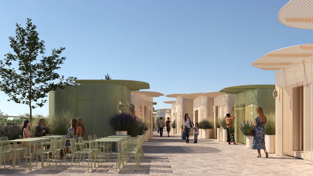 El recorrido se descubre de a poco: rampas peatonales conectan distintos niveles, invitando a explorar sin prisa y a disfrutar la llegada como parte de la experiencia. La arquitectura acompaña las curvas existentes, organiza locales en pequeñas células orientadas hacia el norte y genera espacios intermedios de sombra y calma. Las islas verdes funcionan como pausas naturales, mientras la intervención unifica naturaleza, arte y ciudad en un espacio sereno, detallado e inmersivo.